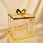 Premium clear acrylic with golden bow top design.
